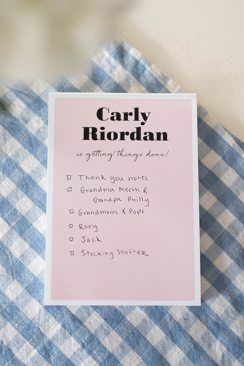 The first thing I tackled was ordering personalized thank you notes. It sounds so small, but it makes such a big difference. By the time the holidays hit, the last thing I want on my plate is designing stationery. With Shutterfly, I could choose a design I loved, add our family name, and now I have a stack ready to go. One less thing to think about when the season gets hectic! I even made some separate ones for myself because I loved the bow so much… and a notepad to keep everything organized.