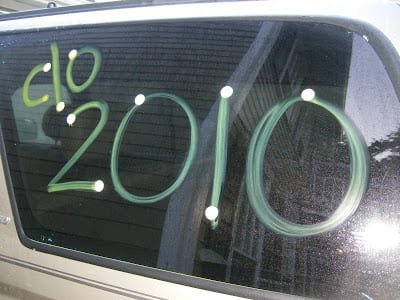 SM & I tagged the girls’ cars! It was so cute!!! The cars were wet from last night’s rain so it was a little tricky!