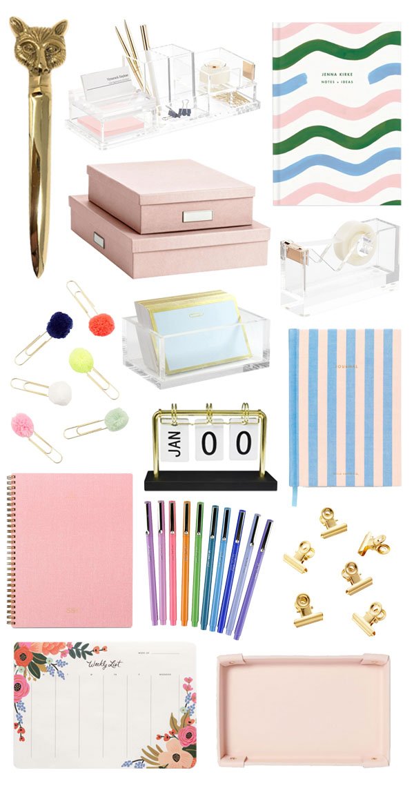 I try to keep my desk relatively clear of items– since I end up bringing so many things by the end of the day. (Seriously, I’ll have two water glasses, a sparkling water can, a bag of chips, and at least one coffee mug surrounding me when I’m finished with work.) That said, I love good “school supplies” to have on hand for organization and, well, motivation for organization!