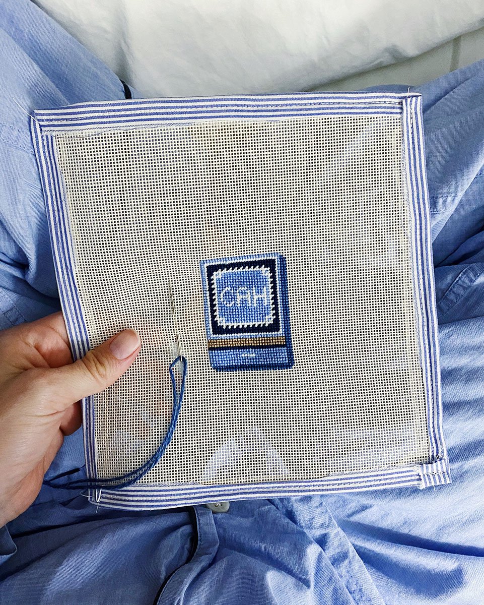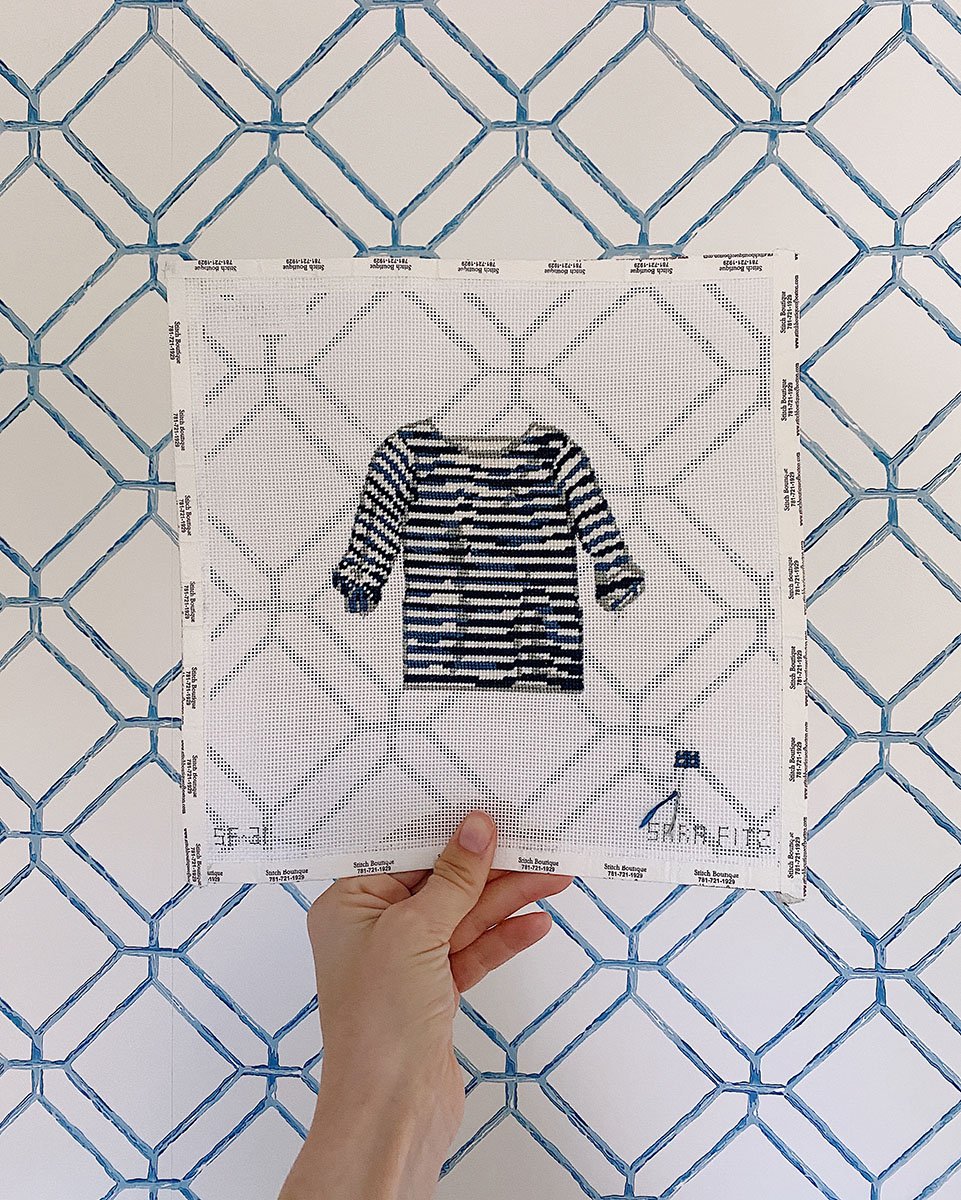 I finished my little needlepointed striped shirt by Sara Fitz. I did the background and will eventually do a small frame of it! I thought it came out so cute… it ended up being a labor of love because I realized halfway through that I hated the blues I originally stitched. I decided to take the time to rip out all the threads and start over. I’m so glad I did… these blues ended up being much better.