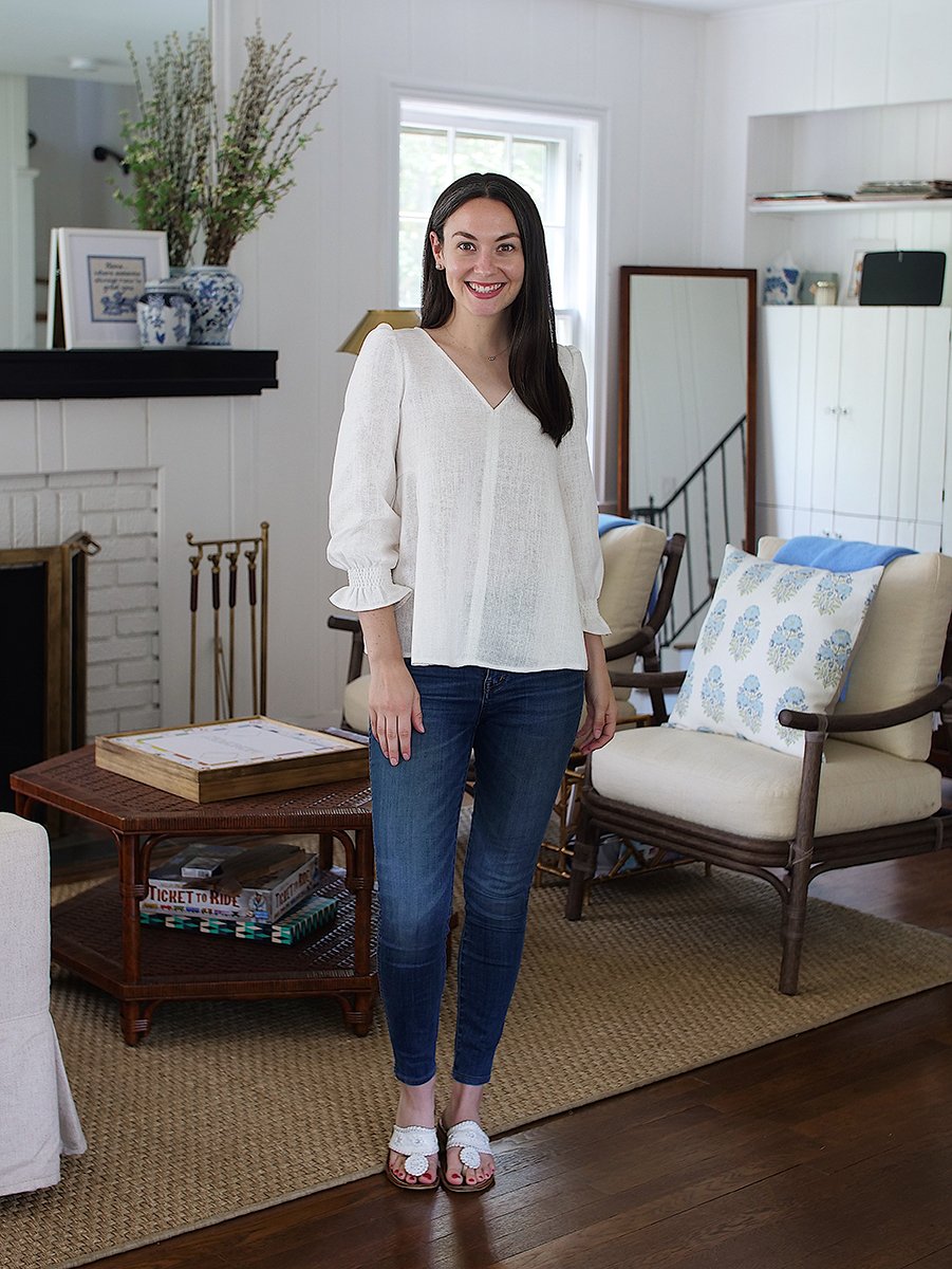 9″ WHITE JEANS // Maybe not surprisingly, my favorite pair of white jeans are the same 9″ fit as the black denim. I do find the white denim to have more stretch than the black, but not so much so that you end up with that dreaded saggy seat at the end of the day.