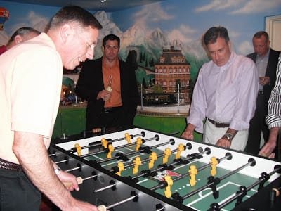 The dad is really lucky and had been invited to go on a aircraft carrier where he met a ton of people, including General Petraeus. General Petraeus had been to their house before and had so much fun that they decided to do it again. The dad is really into trains and converted his garage into “The Train Room.” It is absolutely INCREDIBLE. The General is also a huge fan of foosball so they set up a table for everyone to play.