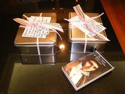Here’s the packages I did up for them! PS I know the tins are two different sizes, it really irritated me when I noticed that. They were in the same display at the store. Oh well!