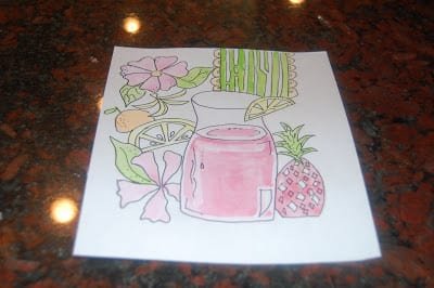 With my new determination, I set out to recreate some of my favorite Lilly patterns.  I was planning on framing my Lilly Shift Dress Notecards, but couldn’t find a frame I liked enough.  I pulled the cards out and set out to paint some of the motifs.