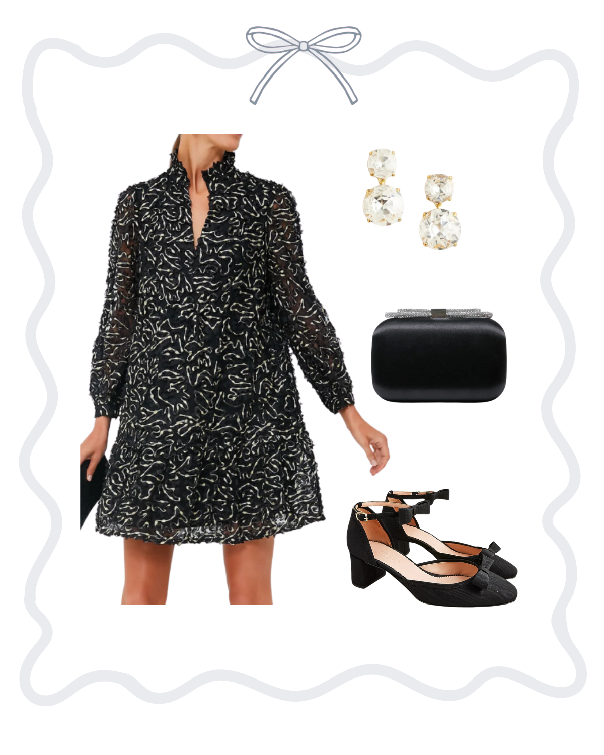Tuckernuck can do no wrong, in my opinion when it comes to holiday dresses. This is the perfect example of classic vibes with a modern twist. The ruffled collar and long sleeves play for a sophisticated feel while the shimmering gold details add a playful touch. Style with this under $100 bow clutch and my favorite holiday heels for an evening out.
