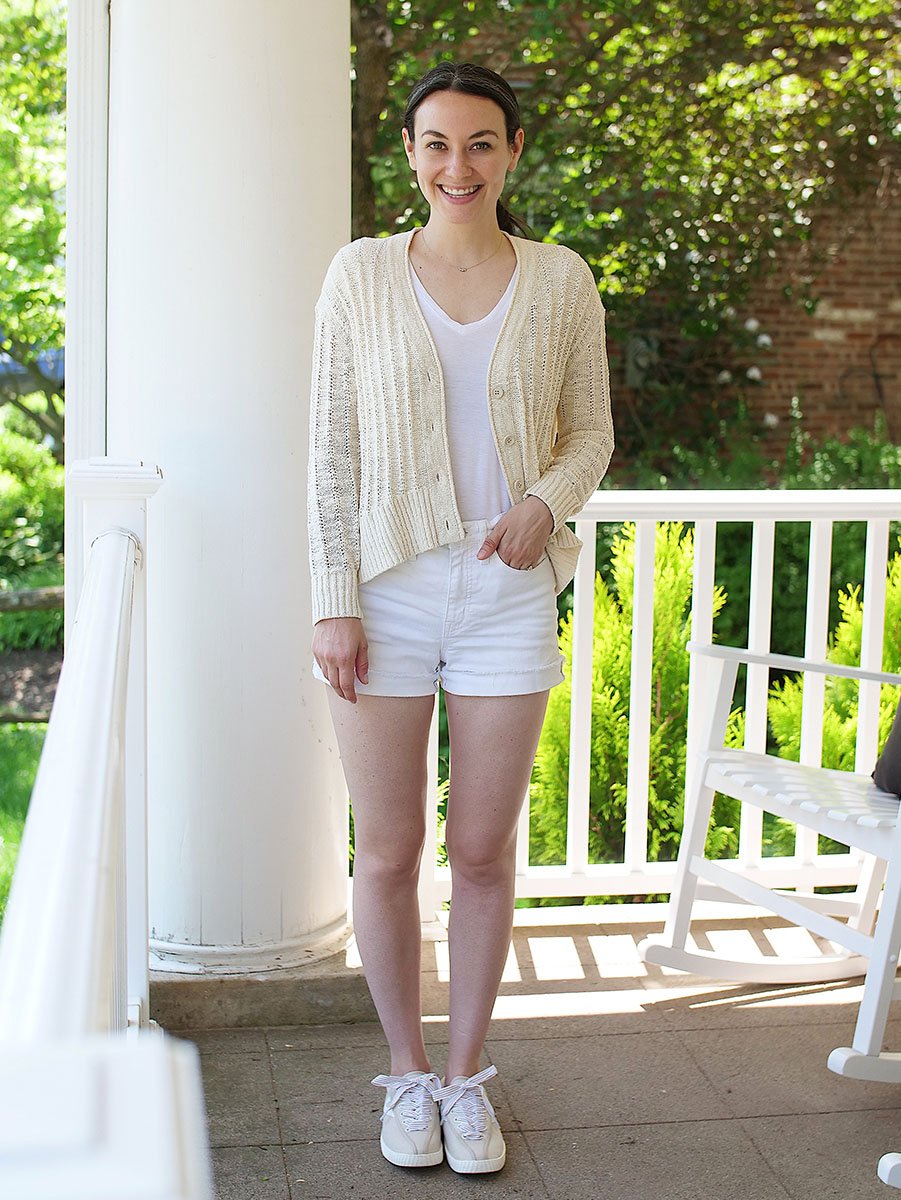 Cardigan // V-Neck Shirt // Shorts // Sneakers
