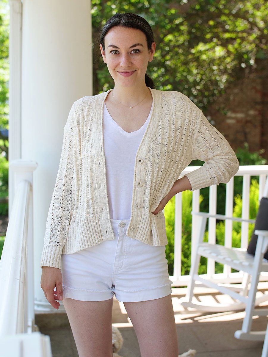 How cute is this summer-weight cardigan? I love that it’s cropped and boxy– perfect for just throwing on. I think it’d look great over a bathing suit, with a flirty dress, or with a camisole and jeans. It’s a little grandma and maybe that’s why I love it so much!
