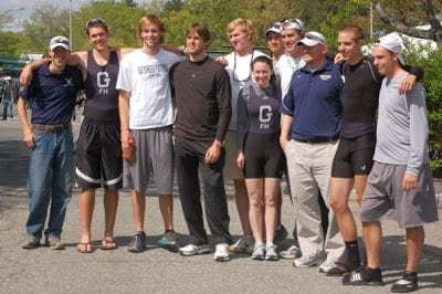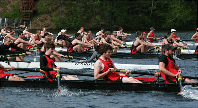 This is us during our first heat. You can see me right in the middle of the picture (behind the crew in the red, Rutgers).