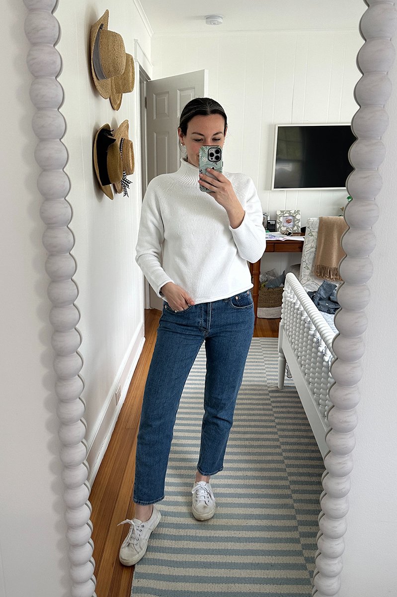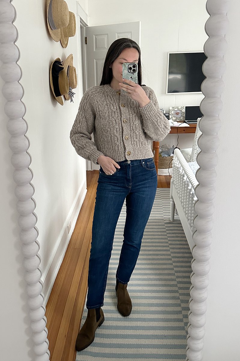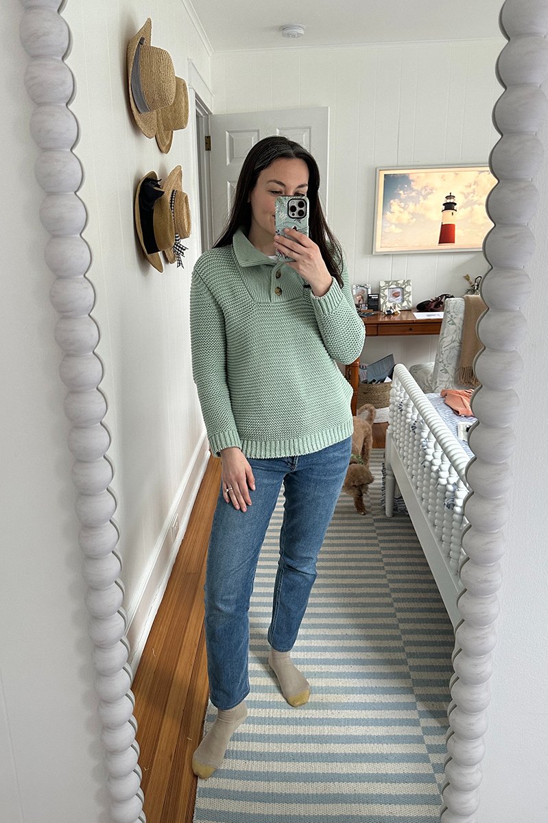 I brought this outfit with me to the gym to change into, but full disclosure…. it was so cold and gloomy and we had no plans outside of the house, so I put (clean lol) workout clothes back on. Still love the outfit though and would wear it if we had things to do.