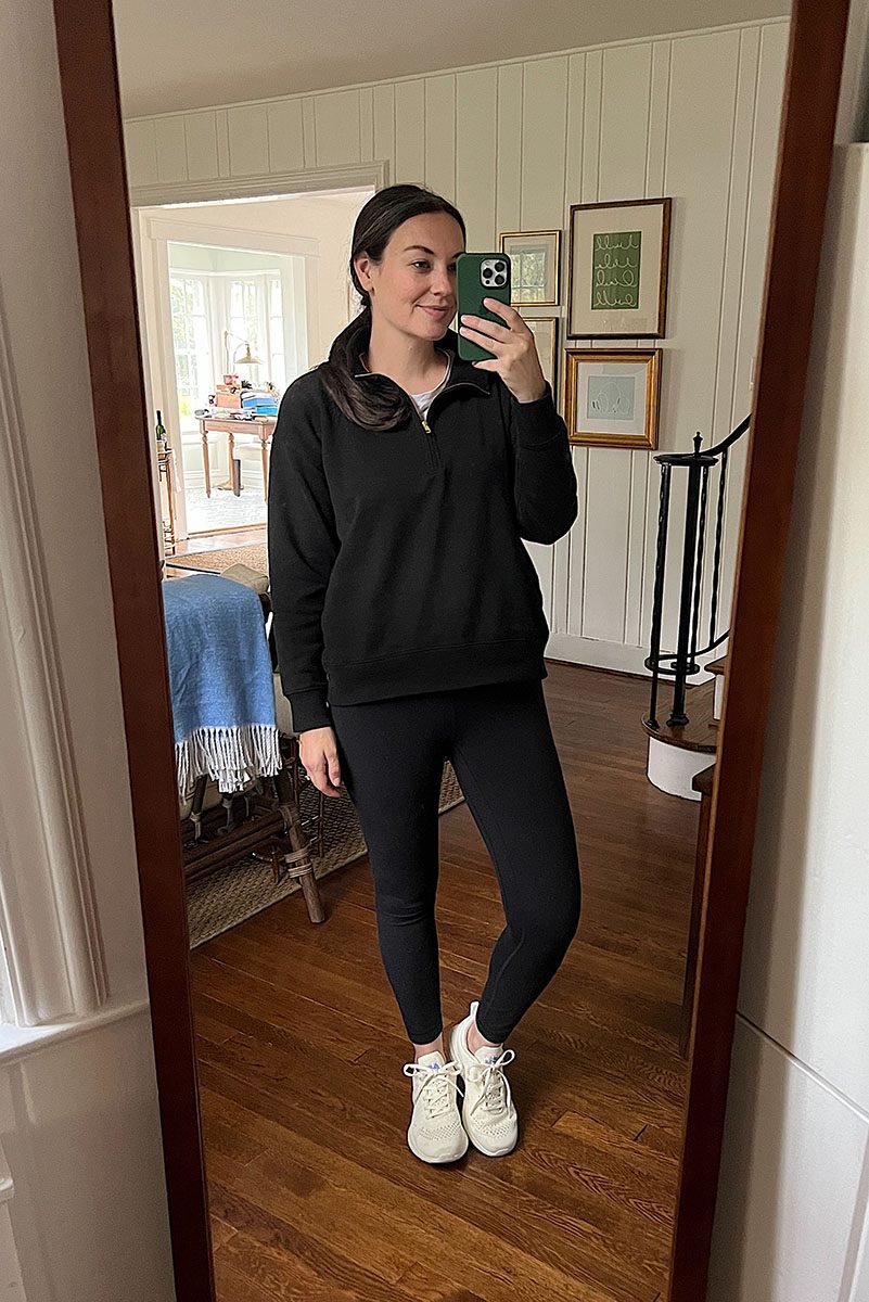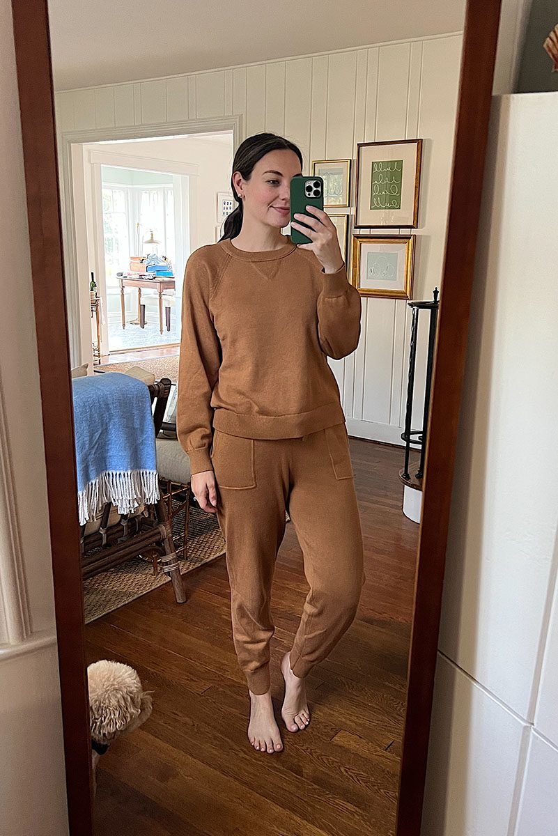 Elsa and I finally got to go apple picking for some outfit photos. (I was also excited to take Jack even though he won’t remember it and he 100% slept through the entire outing anyway.) We got home and I changed into some comfy clothes because I had a ton of desk work I needed to do. Living for this matching set.